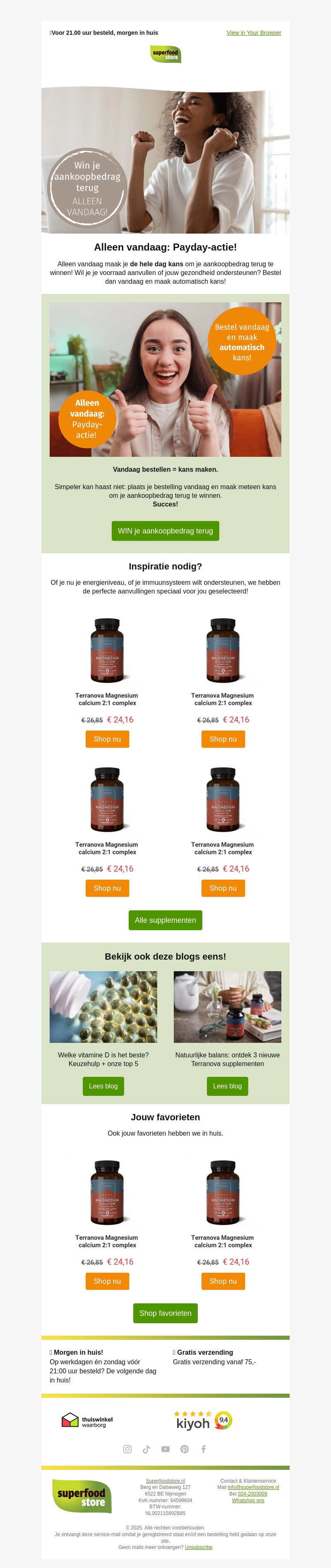 alleen vandaag win je aankoopbedrag terug ypderalm