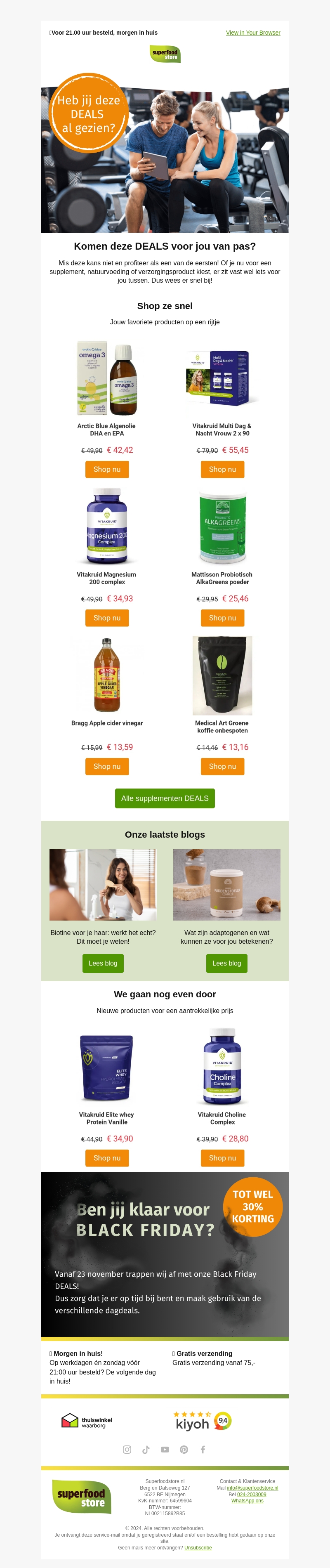 Mis deze kans niet en ontdek de nieuwste aanbiedingen op supplementen en natuurproducten. Van algenolie tot magnesium, er is voor ieder wat wils. Bereid je voor op Black Friday met extra kortingen. Shop snel jouw favoriete producten en profiteer van gratis verzending. Blijf op de hoogte met onze nieuwste blogs over gezondheid en wellness.