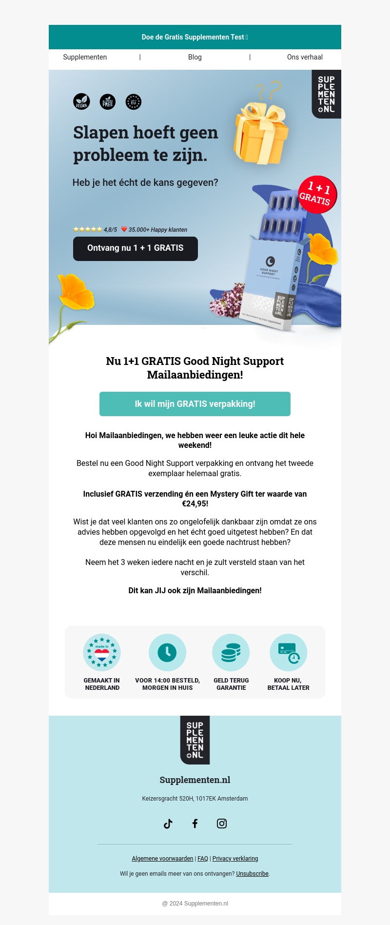 1 + 1 GRATIS Good Night Support Mailaanbiedingen (op = op)