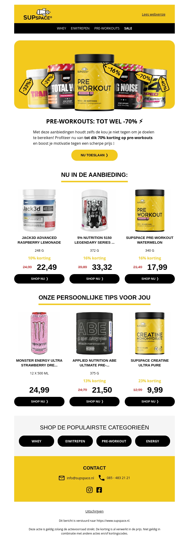 ⚡ Pre-workouts: tot wel -70%