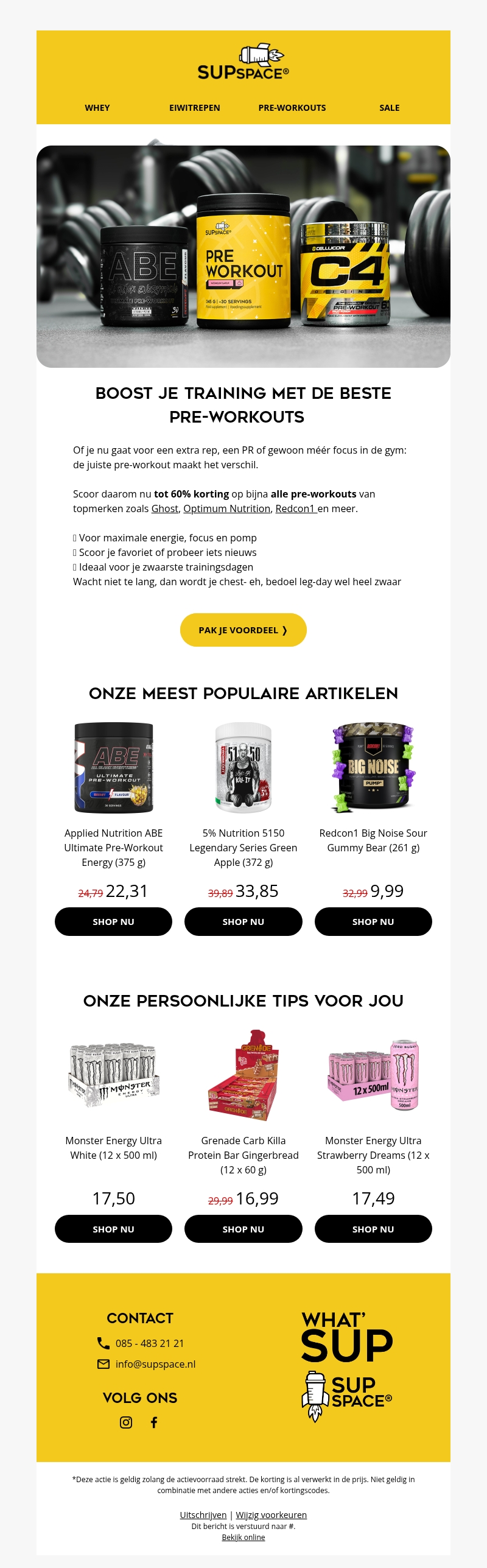 ⚡ Tot 60% korting op pre-workouts van topmerken