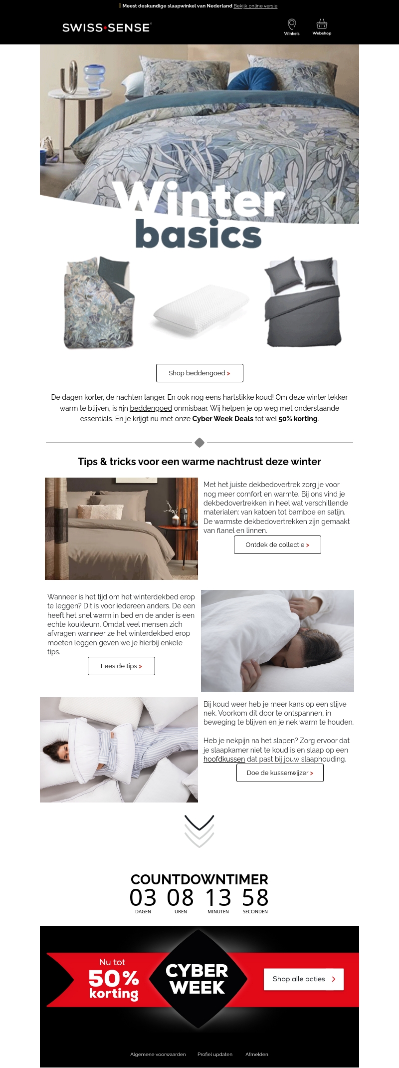 De winter is officieel gearriveerd en dat betekent lagere temperaturen en langere nachten. Maak je bed klaar voor de winter met ons uitgebreide assortiment dekbedden en beddengoed. Profiteer van de Cyber Week Deals met kortingen tot wel 50%. Zorg voor een warme nachtrust met onze tips en advies. Vergeet niet onze collectie te verkennen en je perfecte kussen te kiezen.