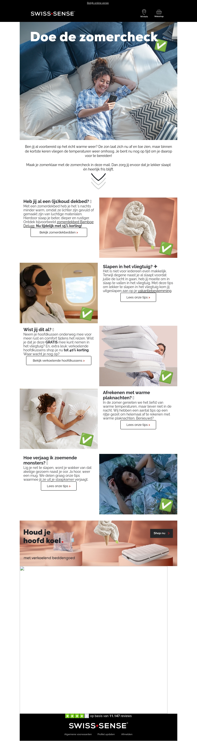 Ben jij al voorbereid op het warme weer? Doe de zomercheck en zorg ervoor dat je lekker slaapt en heerlijk fris blijft. Ontdek zomerdekbedden, verkoelende hoofdkussens en tips tegen warme nachten en vervelende insecten. Profiteer nu van 15% korting!