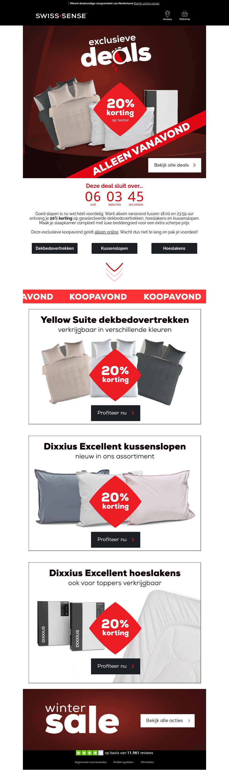 Mis het niet! Alleen vanavond krijg je 20% korting op geselecteerd beddengoed, hoeslakens en kussenslopen. Deze deal loopt maar kort, dus pak je voordeel online. Je kunt kiezen uit diverse kleuren en stijlen. Maak jouw slaapkamer compleet voor een geweldige prijs.
