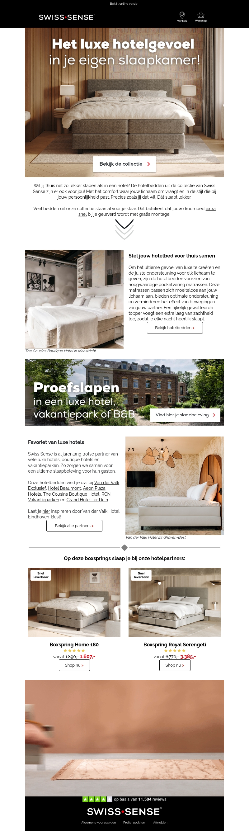 Wil je thuis net zo lekker slapen als in een hotel? Met de Swiss Sense hotelbedden kan dat! Onze collectie biedt luxe en comfort, zoals je gewend bent van luxe hotels. Laat je inspireren door onze boxspringmodellen en creëer jouw ultieme slaapomgeving.