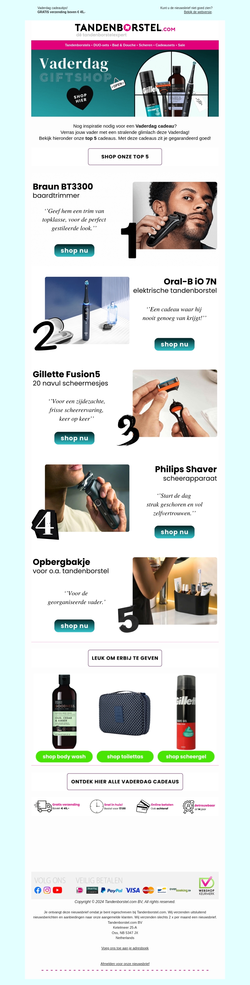 Verras jouw vader met een stralende glimlach deze Vaderdag! Bekijk onze top 5 cadeaus die je vader zeker zal waarderen. Of hij nu houdt van een gladde scheerbeurt of een georganiseerde badkamer, wij hebben het perfecte cadeau. Ontdek hier alles wat je nodig hebt!