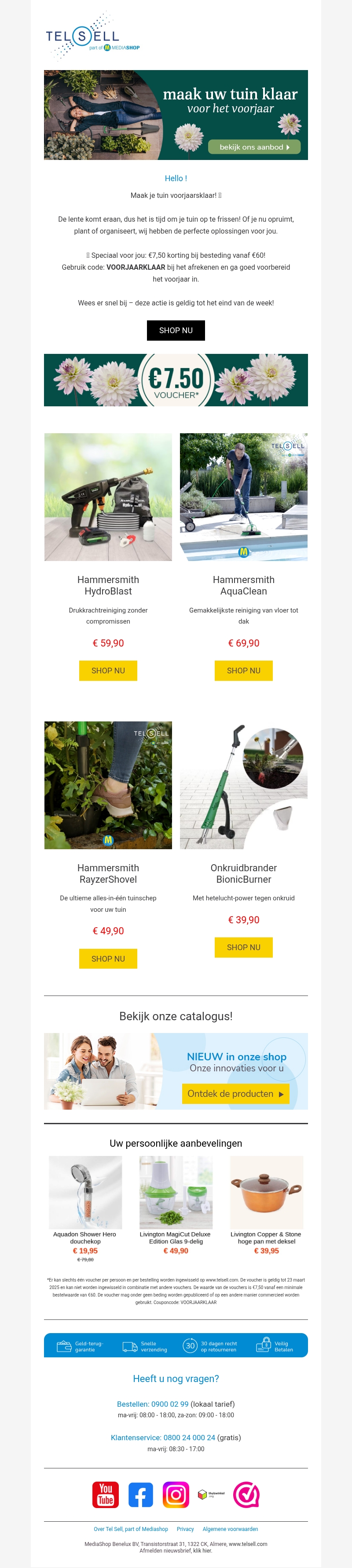 De lente is in aantocht! Het is tijd om je tuin op te frissen. Of je nu opruimt, plant of organiseert, wij hebben de perfecte oplossingen voor jou. Profiteer nu van €7,50 korting bij besteding vanaf €60. Gebruik de code VOORJAARKLAAR en shop prachtige tuinproducten.
