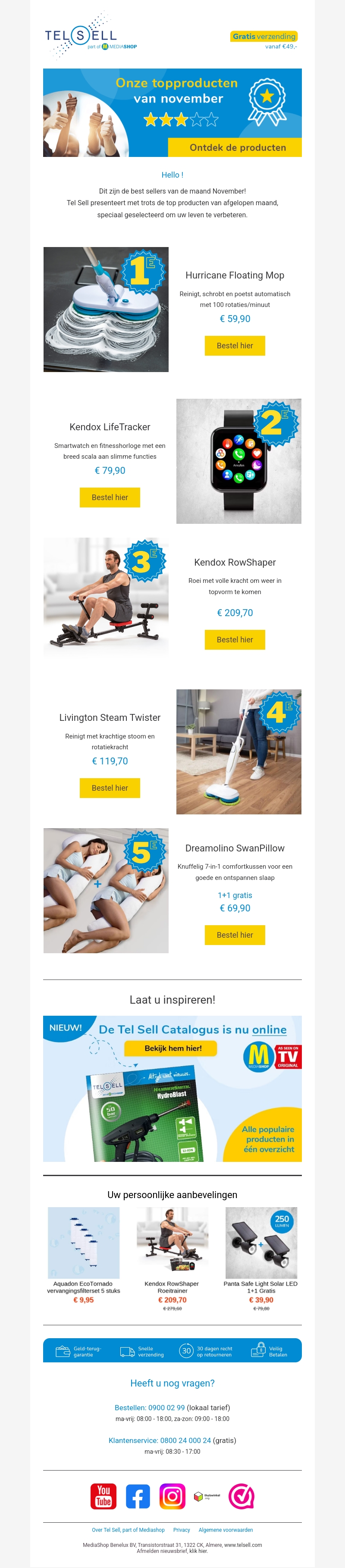 Bekijk de selectie van de bestsellers van november bij Tel Sell. Van de Hurricane Floating Mop tot de Dreamolino SwanPillow, deze producten zijn speciaal gekozen om uw leven te verbeteren. Profiteer van onze maandelijkse aanbiedingen en gratis verzending vanaf β¬49. Ontdek nu welke topproducten u niet mag missen.