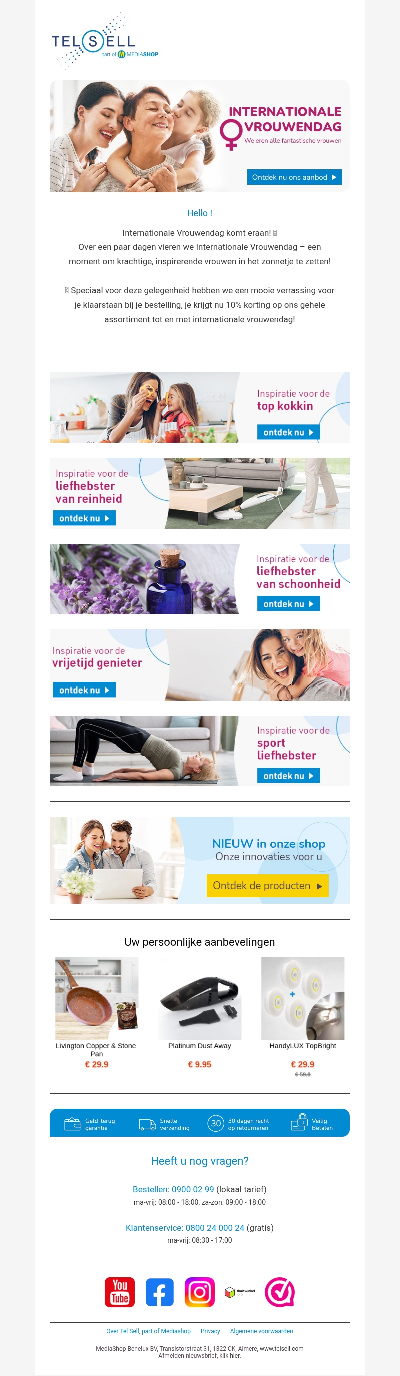 Internationale Vrouwendag komt eraan, en we vieren alle krachtige en inspirerende vrouwen. Profiteer van 10% korting op ons gehele assortiment. Ontdek inspirerende producten voor kokkinnen, schoonheids- en sportliefhebsters, en meer. Bezoek onze shop voor uw persoonlijke aanbevelingen en innovaties.