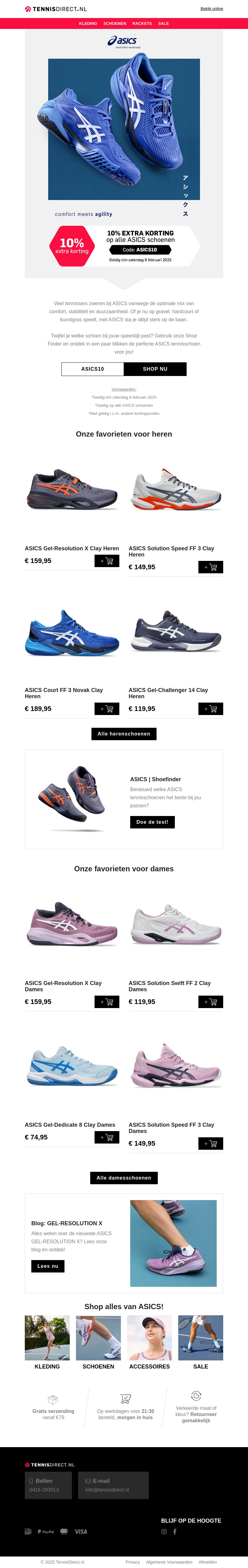 10% korting op ASICS tennisschoenen