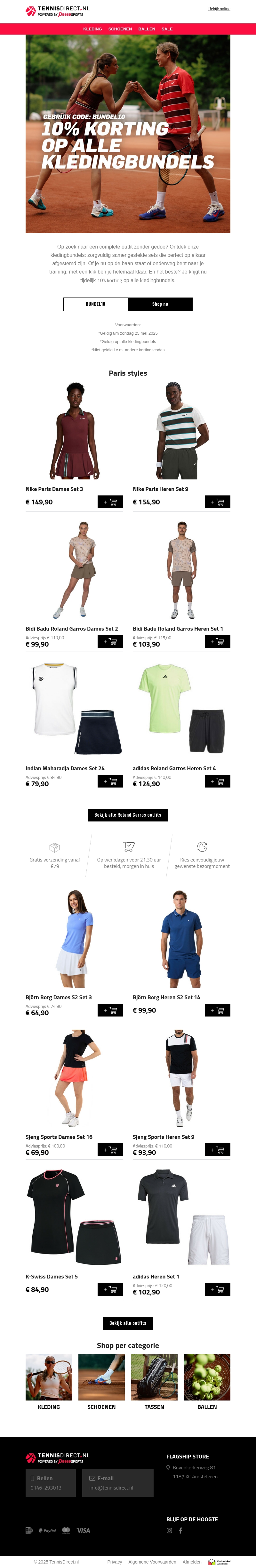 10% korting op kledingbundels! Scoor jouw complete tennisoutfit