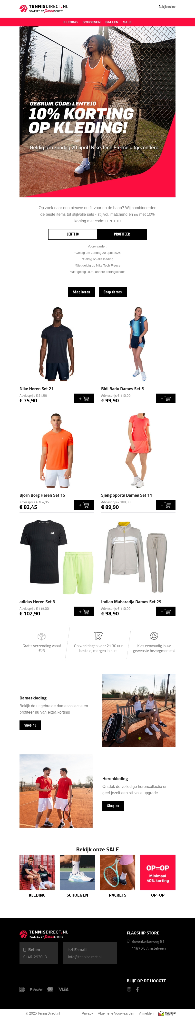 10% korting op kledingbundels! Scoor jouw complete tennisoutfit