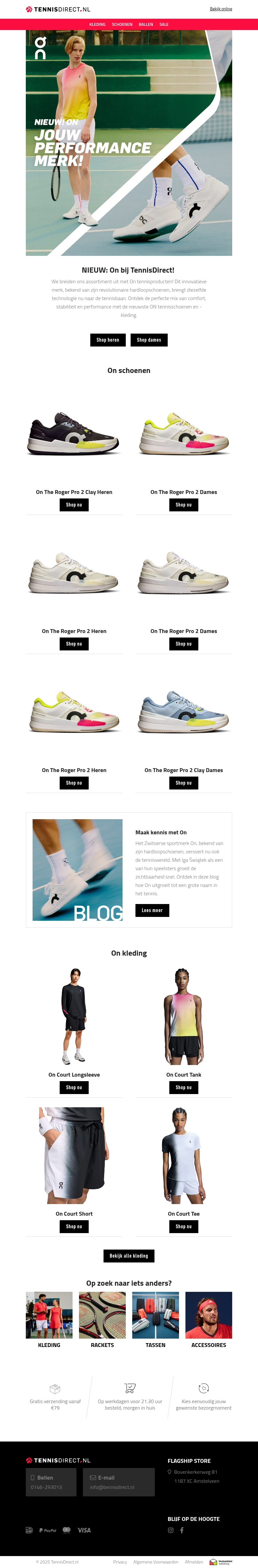 Maak kennis met de nieuwste collectie van On bij TennisDirect. Deze innovatieve sportkleding en schoenen beloven comfort en prestaties voor iedere sporter. Ontdek de collectie nu en verbeter je spel naar een hoger niveau. On is nu beschikbaar voor zowel heren als dames.