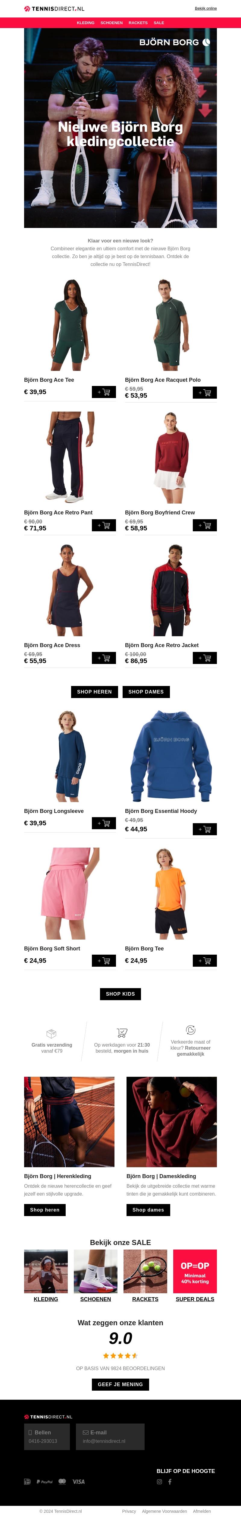 Ontdek de nieuwste herfst/winter collectie van Björn Borg. Combineer stijl met comfort in onze veelzijdige kledinglijn. Van sportieve outfits tot casual wear, wij bieden alles. Profiteer nu van speciale kortingen en aanbiedingen. Shop voor heren, dames en kinderen en vernieuw je garderobe vandaag nog.