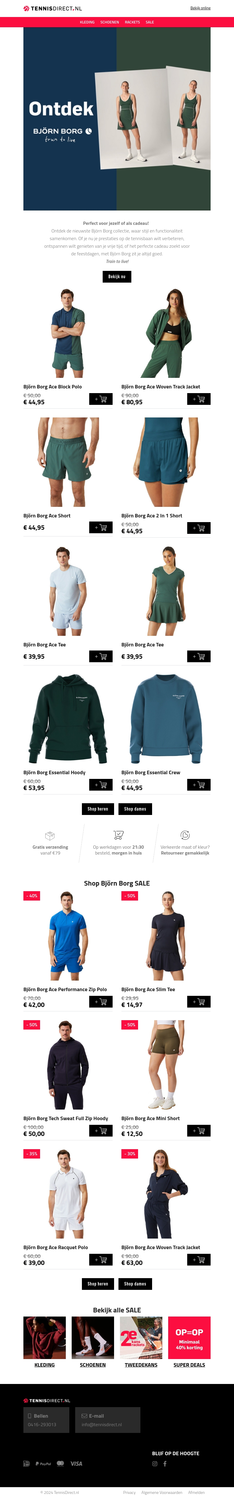 Ontdek de nieuwste Björn Borg collectie met stijlvolle en sportieve outfits. Perfect voor jezelf of als cadeau. Geniet van exclusieve kortingen op geselecteerde items en shop nu! Mis de kans niet om je garderobe een upgrade te geven.