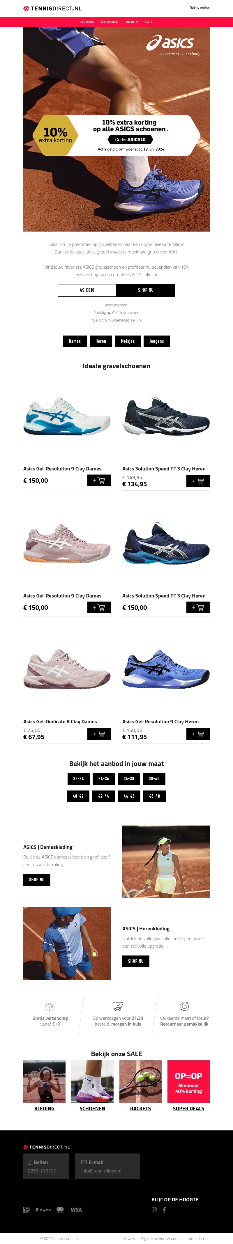 Ontvang tijdelijk 10% kassakorting op alle ASICS schoenen bij TennisDirect.nl. Gebruik de couponcode voor extra korting. Actie geldig tot en met woensdag 19 juni 2024. Mis deze kans niet om jouw nieuwe tennisschoenen met korting aan te schaffen!