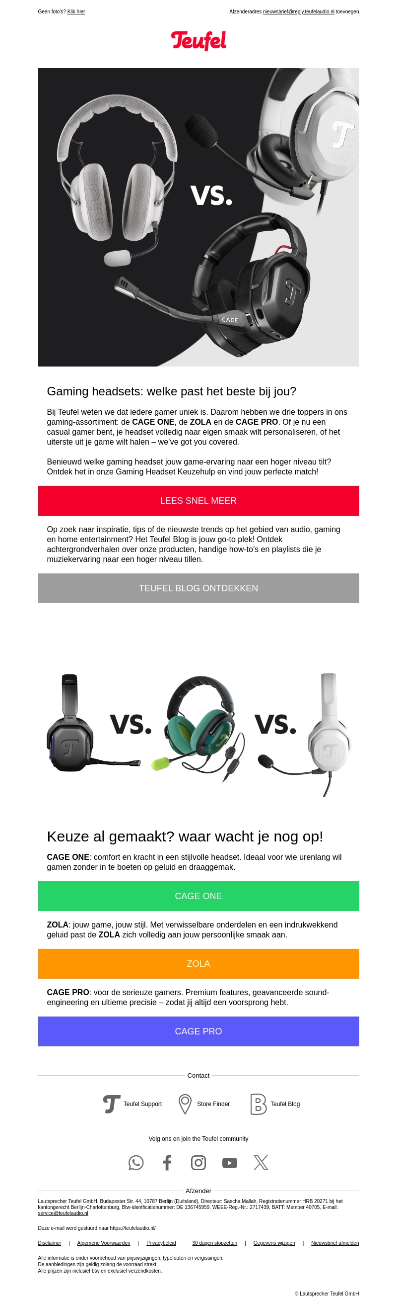 Teufel keuzehulp: CAGE ONE, ZOLA en CAGE PRO