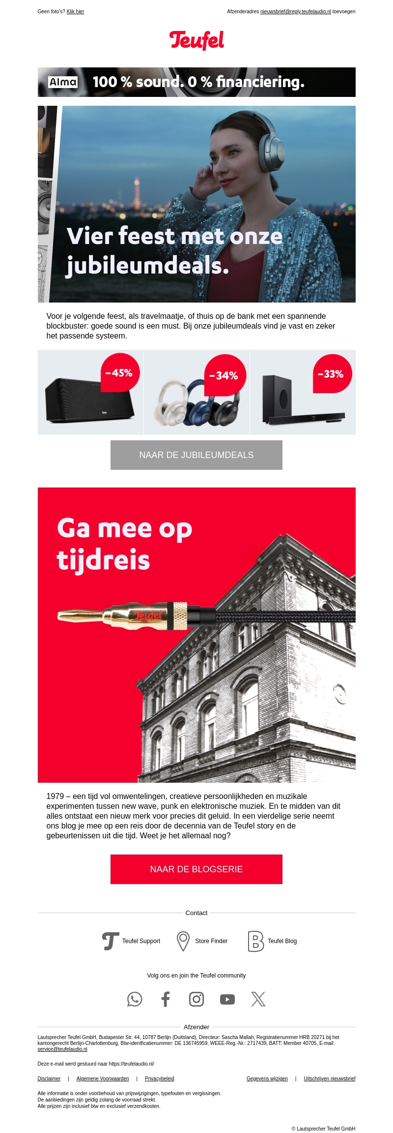 Voordat je je volgende feestje viert, is goede sound essentieel. Ontdek onze jubileumdeals met geweldige kortingen oplopend tot 45%. Perfect voor feestjes, reisavonturen, of gewoon thuis op de bank.