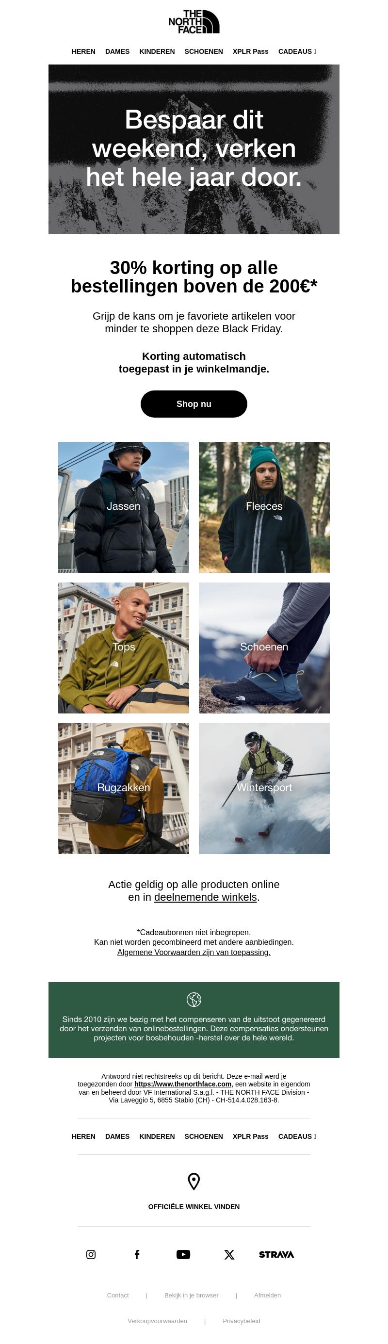 Mis deze Black Friday niet en profiteer van 30% korting op alle bestellingen boven de 200€. Kies uit een breed scala aan producten zoals jassen, fleeces, tops, schoenen, rugzakken en wintersportkleding. De korting wordt automatisch toegepast in je winkelmandje. Shop nu online of bezoek een van de deelnemende winkels.