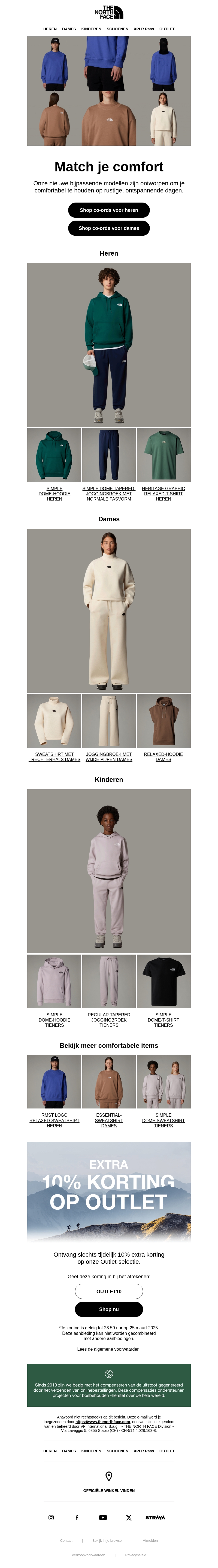 Match je comfort met onze nieuwste collectie. Ontdek frisse stijlen voor heren, dames en kinderen. Perfect voor relaxte, ongedwongen dagen met de nieuwste trends. Profiteer nu van 10% korting op onze outlet selectie. Shop nu en vind jouw perfecte outfit!