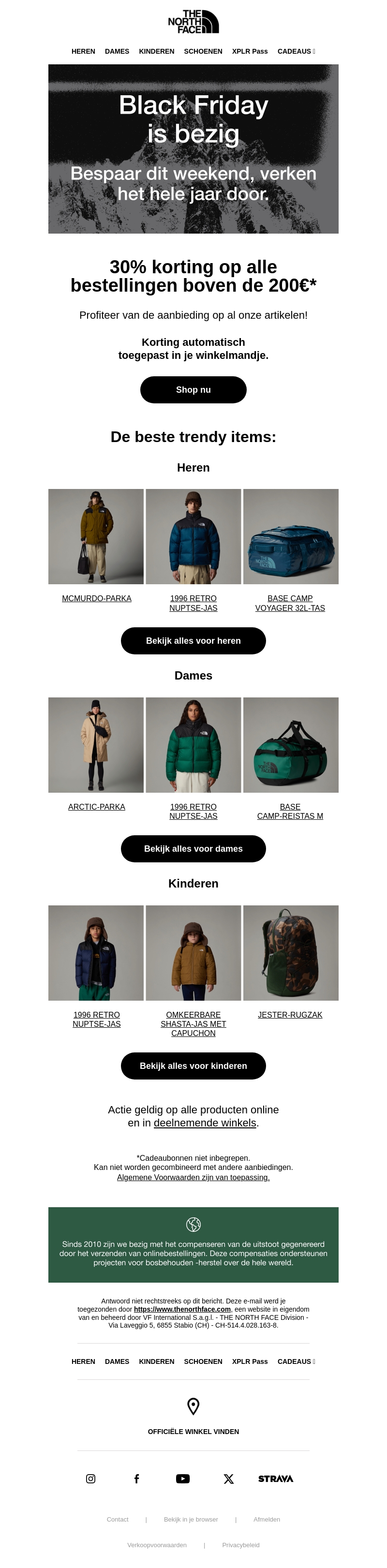 Het is weer Black Friday bij The North Face! Profiteer van 30% korting op alle bestellingen boven de €200. De actie geldt online en in deelnemende winkels. Ontdek trendy items voor heren, dames en kinderen. Korting wordt automatisch in je winkelmandje toegepast.