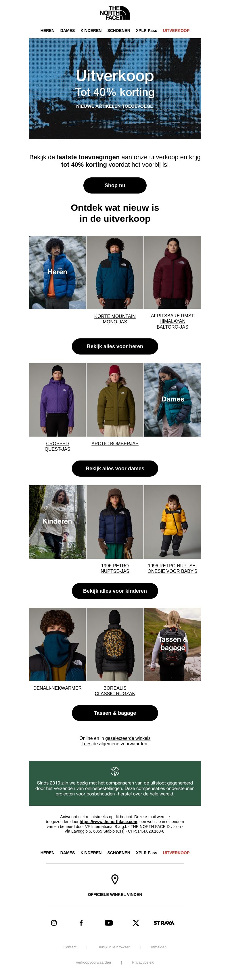 Ontdek de nieuwste items toegevoegd aan onze uitverkoop met kortingen tot 40%! Van jassen tot accessoires voor heren, dames en kinderen, er is voor ieder wat wils. Mis deze kans niet om uw favoriete The North Face items met korting te bemachtigen. Winkel online of bezoek geselecteerde winkels. Duurzaam en trendy, zorg dat je erbij bent!