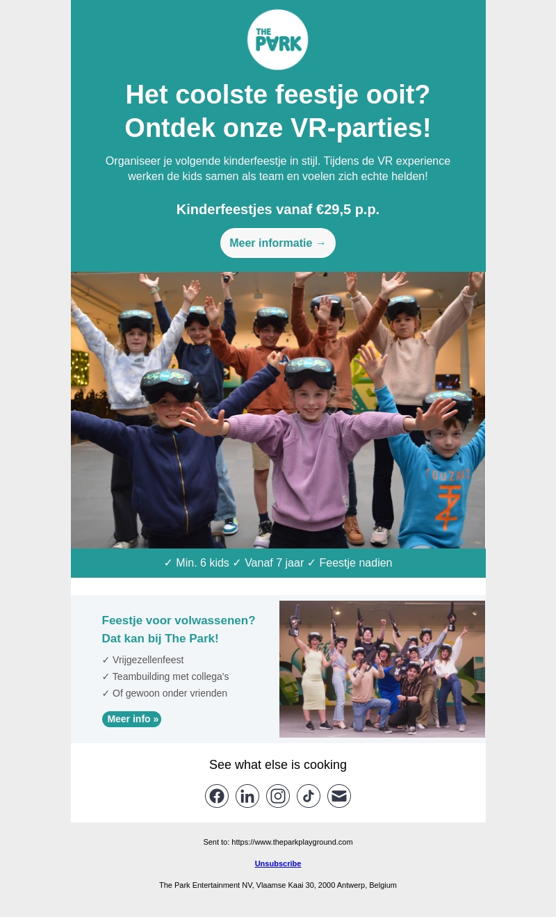 Organiseer je volgende feest in stijl met onze VR-parties. Bij The Park kunnen kinderen vanaf 7 jaar samen werken in een spannende VR experience. Ook volwassenen kunnen genieten van VR-feestjes, perfect voor vrijgezellenfeestjes, teambuilding of gewoon met vrienden.