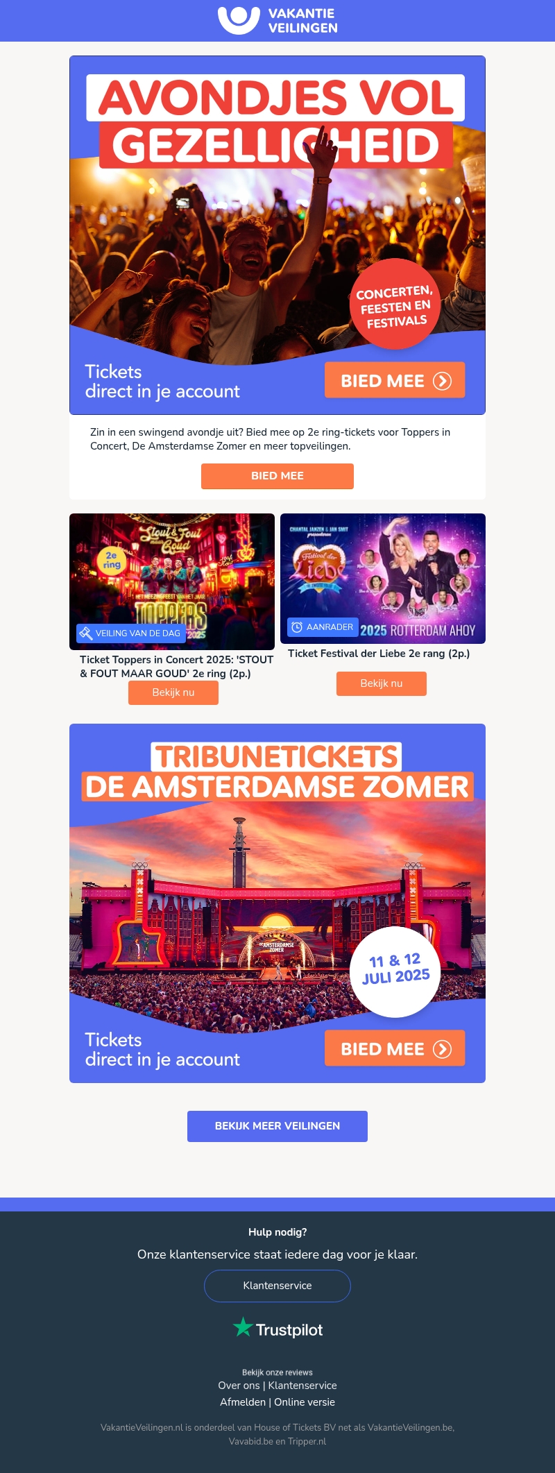 Mis de kans niet om te bieden op 2e ring-tickets voor Toppers in Concert en meer. Ontdek de topveilingen met concerten, feesten, en festivals. Zorg dat je erbij bent voor een avond vol muziek en plezier met VakantieVeilingen. Bied nu en beleef een onvergetelijke ervaring.