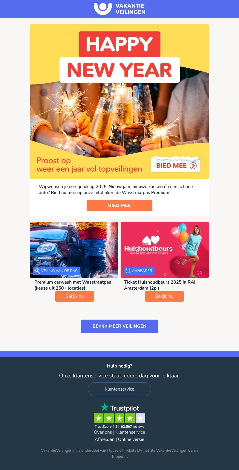 We wensen je een gelukkig 2025! Begin het jaar met nieuwe kansen en een schone auto. Doe mee aan onze veilingen, inclusief de Premium Wasstraatpas voor keuze uit meer dan 250 locaties.