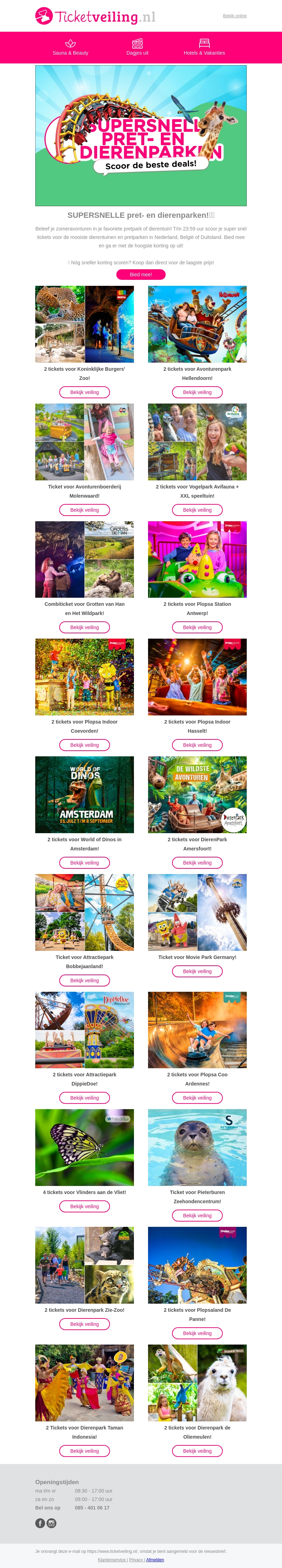 Beleef de zomer met geweldige kortingen bij jouw favoriete pret- en dierenparken! Van de Efteling tot Plopsaland, geniet van onvergetelijke avonturen met dit speciale aanbod. Haast je om te profiteren van deze supersnelle deals.