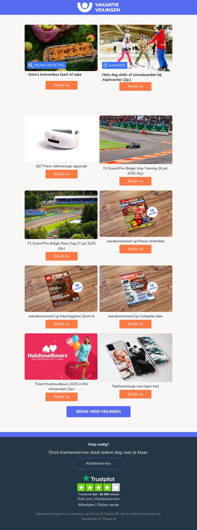 Verwen jezelf met een versgebakken taart rechtstreeks in je brievenbus. Naast heerlijke bakproducten biedt onze nieuwsbrief ook avontuurlijke uitjes zoals skiën, spannende races en unieke abonnementen. Ontdek een wereld vol verrassing en comfort. Mis de aanbiedingen niet en geniet van de beste deals. Schrijf je in en laat je inspireren!