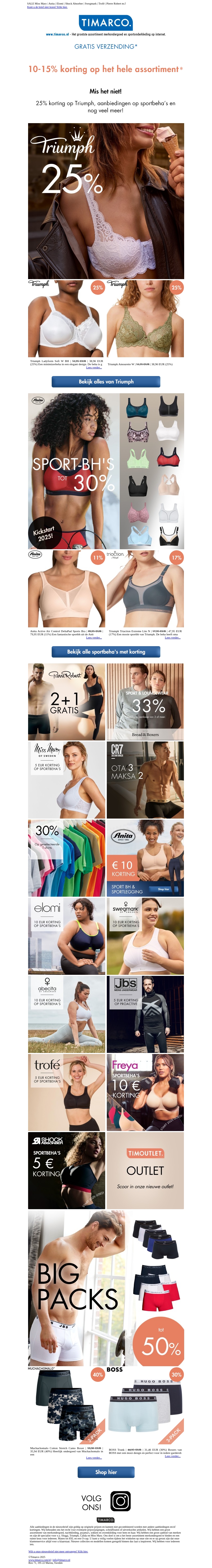 Mis deze geweldige aanbiedingen niet! Ontvang tot 25% korting op Triumph lingerie en profiteer van kortingen op sport-bh's. Er zijn ook voordeelverpakkingen en nog veel meer deals beschikbaar. Ideaal voor iedereen die wil besparen op kwaliteitskleding. Deze kortingen zijn tijdelijk, dus wacht niet langer! Begin met winkelen en verfris je garderobe nu.