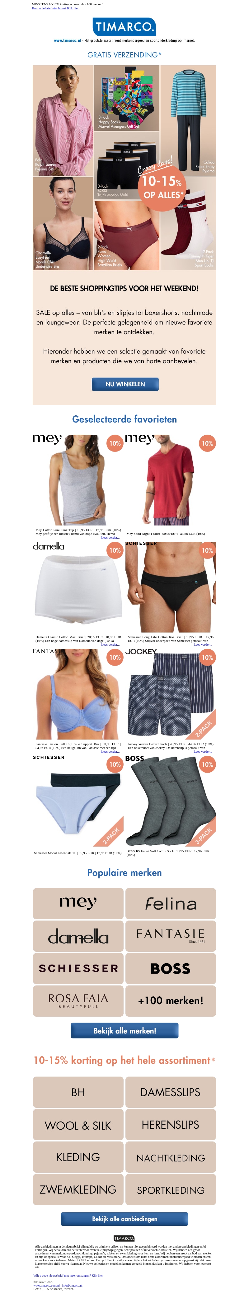 Mis het niet: een geweldige sale bij Timarco met 10-15% korting op het volledige assortiment! Ontdek onze selectie van de beste producten, variërend van dames- en herenkleding tot sport- en nachtmode. Geniet van gratis verzending en ontdek meer dan 100 merken met deze speciale aanbiedingen!