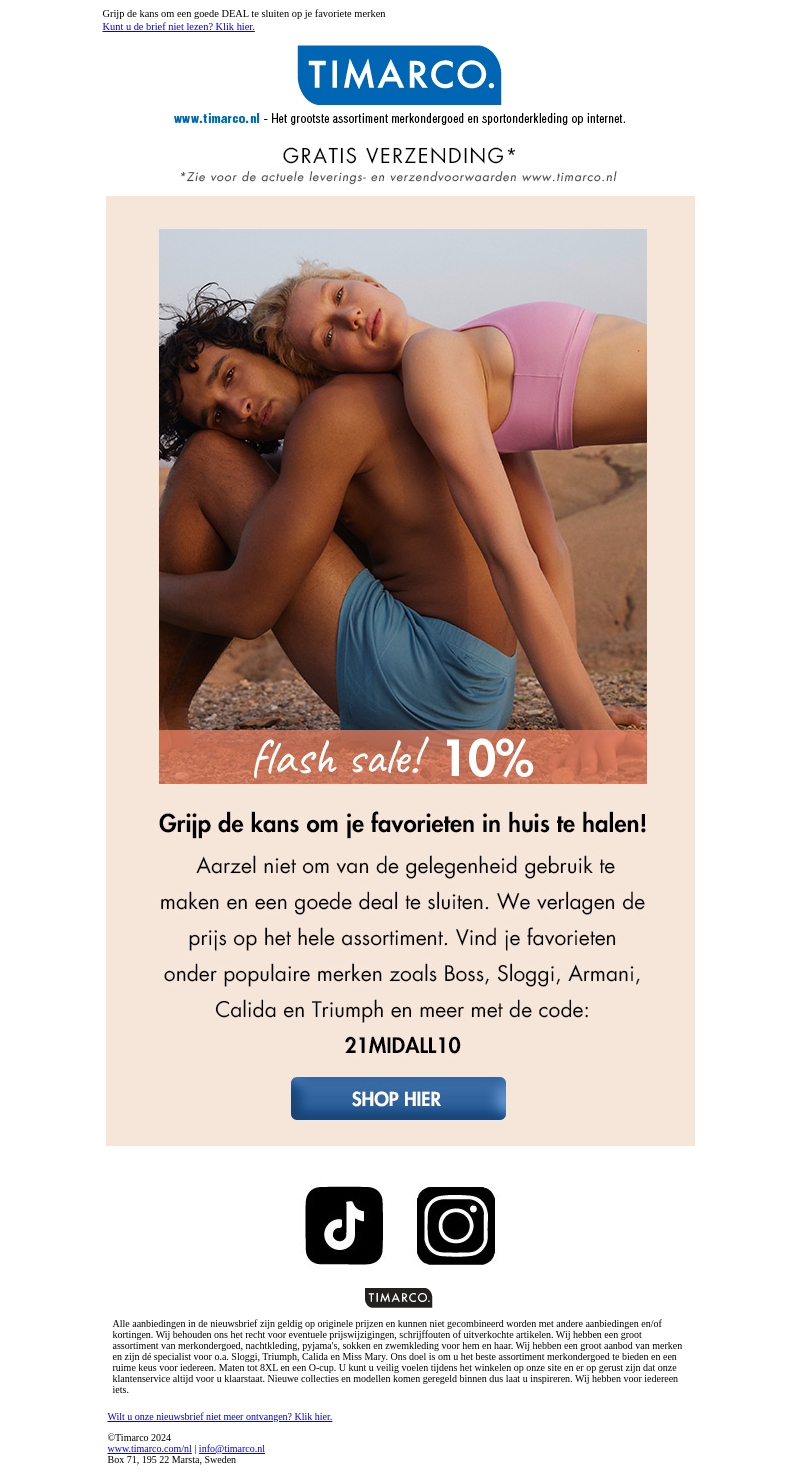 Grijp de kans om je favoriete merkkleding in huis te halen met minstens 10% korting op het hele assortiment. Wees er snel bij en gebruik de code 21MIDALL10. Mis het niet en shop nu!