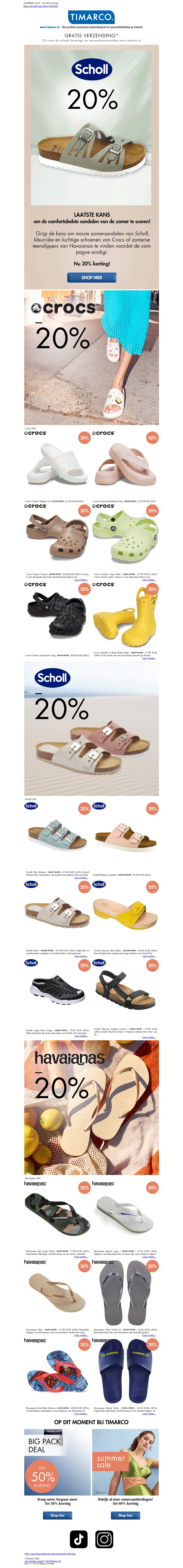 LAATSTE KANS! 20% korting op Crocs, Scholl en Havaianas