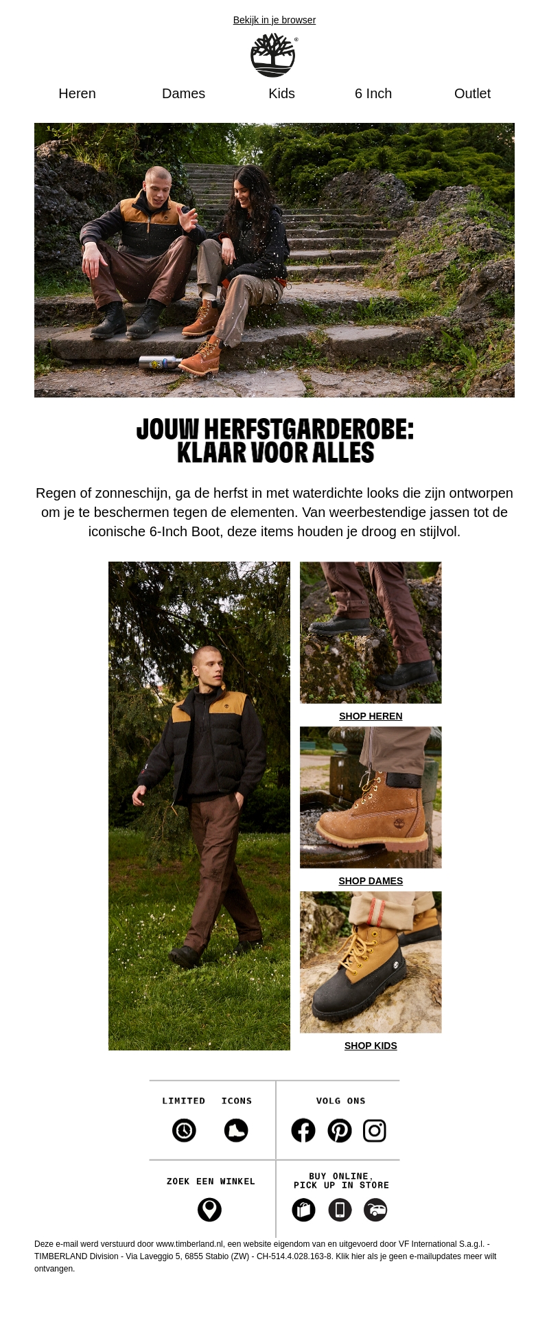 Regen of zonneschijn, ga de herfst in met waterdichte looks die ontworpen zijn om je te beschermen tegen de elementen. Van weerbestendige jassen tot de iconische 6-Inch Boot van Timberland, deze items houden je droog en stijlvol. Shop voor heren, dames en kinderen.