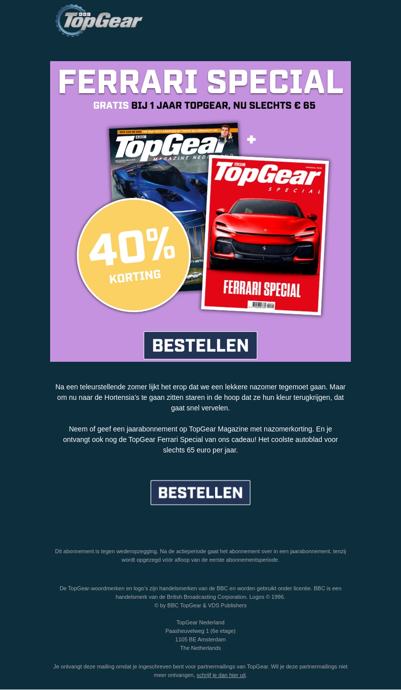 Sluit nu een jaarabonnement op TopGear Magazine af voor slechts €65 en ontvang een gratis Ferrari Special! Profiteer van 40% korting en geniet van het beste autonieuws. Mis deze kans niet en bestel vandaag nog!