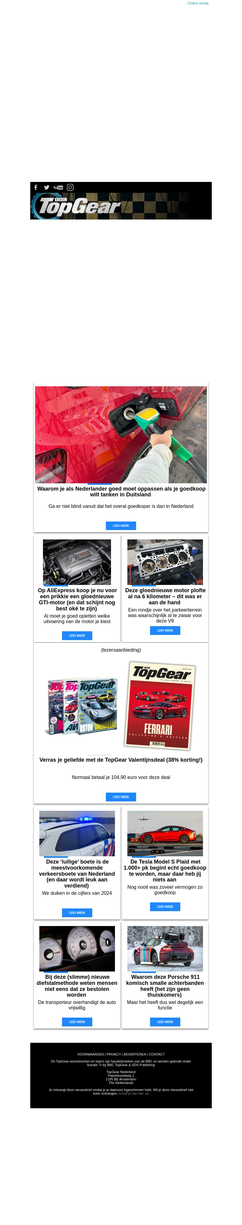 Ontdek de nieuwste TopGear Valentijnseditie met exclusieve Ferrari specials. Geniet van een speciale korting van 38% en geef een cadeau dat autoliefhebbers zeker zullen waarderen. Ontvang ook het laatste nieuws over verkeersboetes en slimme diestalmethodes.