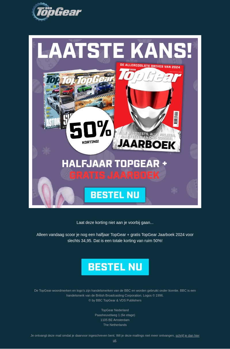 Laatste dag voor de TopGear Paasdeal met 50% korting