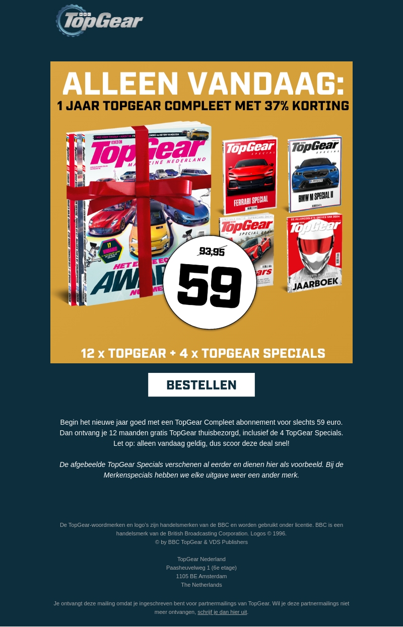Nieuwjaarsdagdeal: TopGear Compleet voor slechts 59 euro