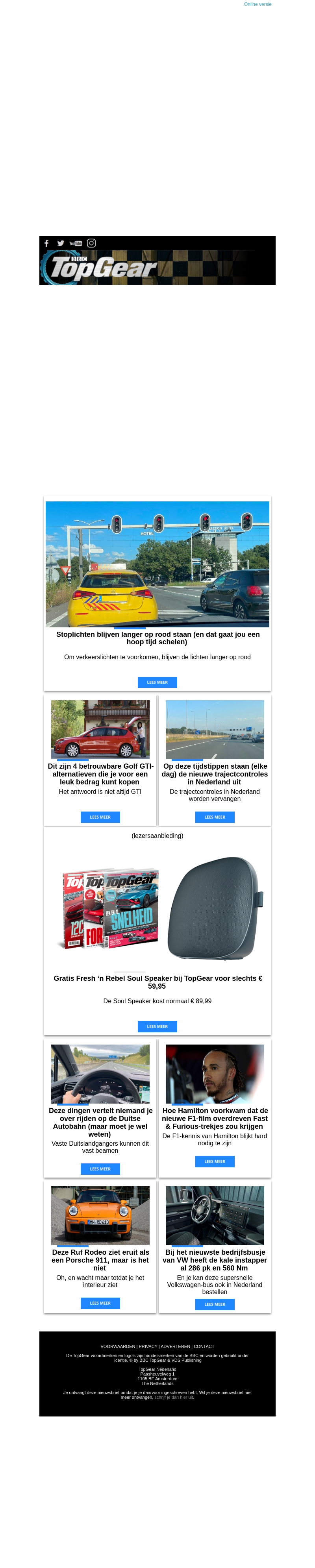 Deze nieuwsbrief bevat belangrijke informatie over de nieuwe trajectcontroles op verschillende locaties. Daarnaast worden er enkele alternatieven voor de Golf GTI besproken en kun je een gratis speaker krijgen bij aankoop van een TopGear magazine. Mis het niet!