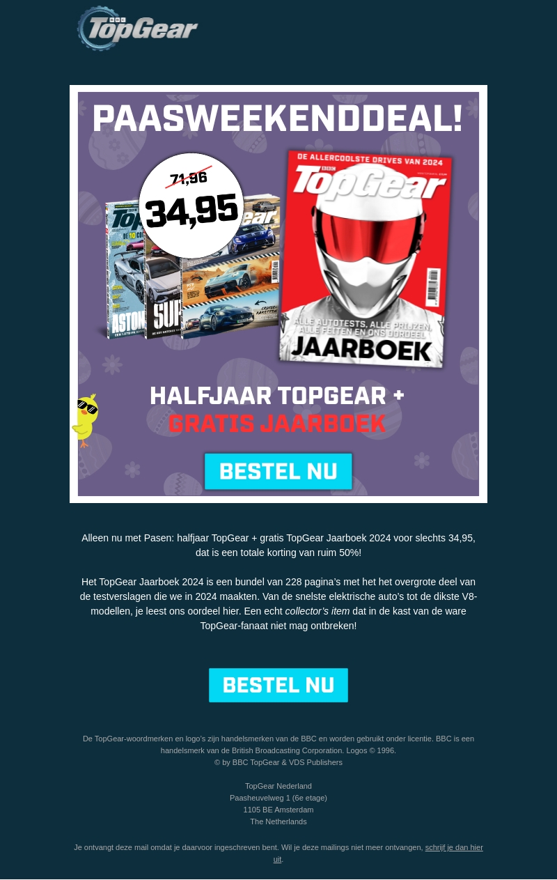 Paasdeal: ruim 50% korting op TopGear + gratis Jaarboek 🐰