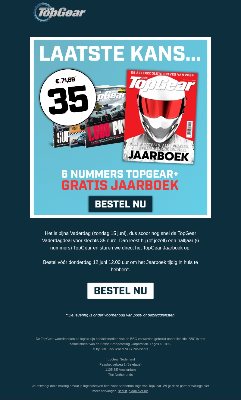 Scoor snel nog de TopGear Vaderdagdeal (50% korting)