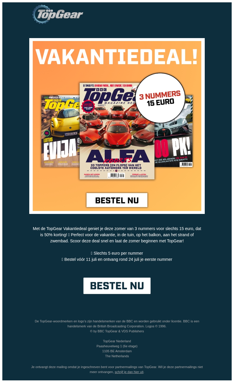 Vakantiedeal: 3 nummers TopGear voor slechts 15 euro
