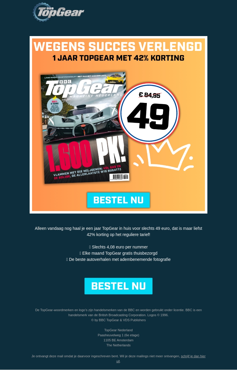 Wegens succes verlengd: 1 jaar TopGear met 42% korting! 👑