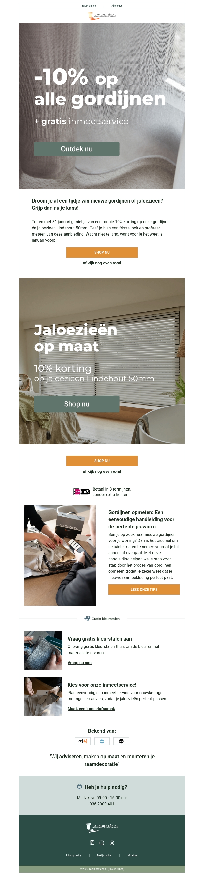 Laatste kans: -10% op gordijnen en jaloezieën!