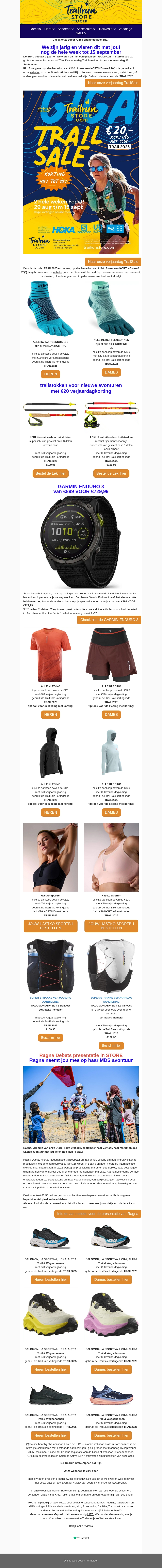 WINTER TRAILSALE tot 40% KORTING GARMIN, SALOMON, HOKA