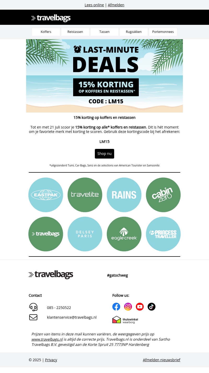 15 korting op koffers en reistassen 8qypwffn