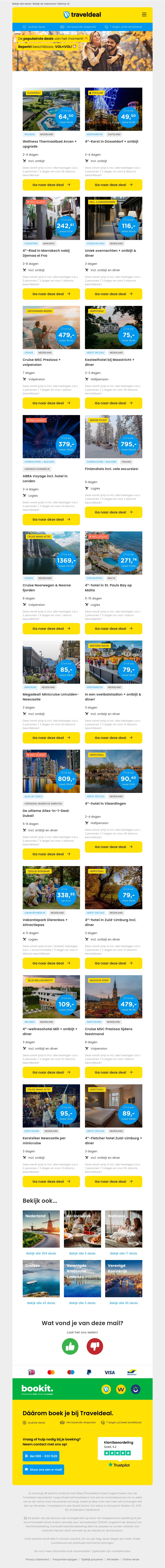 Verken de nieuwste en meest gewilde reisdeals van dit moment. Of je nu droomt van een vakantie vol avontuur of ontspanning, met Traveldeal vind je de perfecte aanbieding. Profiteer van scherpe kortingen en unieke ervaringen. Laat deze kans niet aan je voorbij gaan en boek nu jouw ideale reis. Deze aanbiedingen zijn beperkt beschikbaar, dus wees er snel bij!