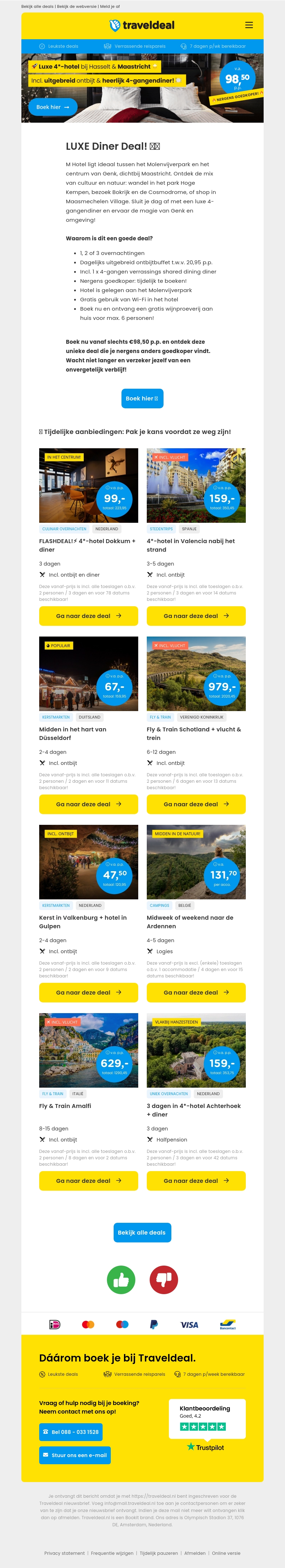 ✨ Exclusieve flashdeal: LUXE verblijf + ontbijt & 4-gangendiner in Limburg BE! €98,50 🍽️